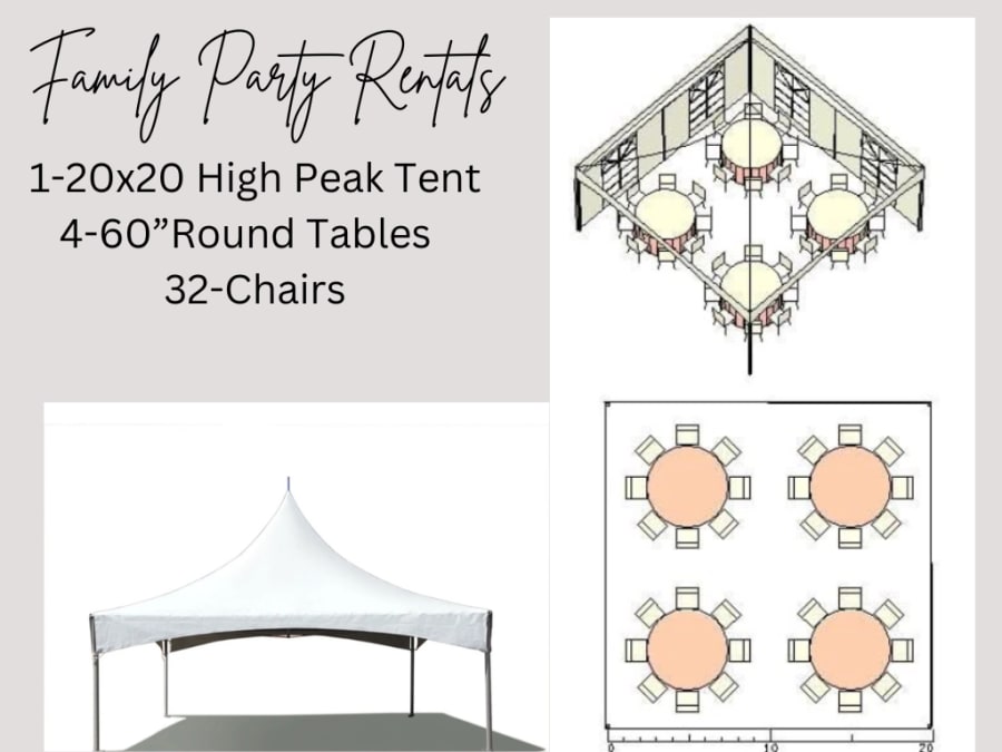 -Can comfortably seat 32 guests under the tent.